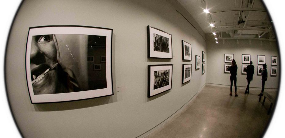 Circular fisheye photos taken in December 2018 at the ICP, NYC of Eugene Richards ‘The Run-On of Time’